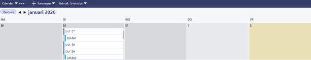 Met de kalenderweergave projecteert u werk-items en taken op een kalender. U kunt kiezen voor een jaar-, maand- of weekweergave (1 of 2 weken).