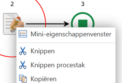 Voor Subproces, Fase, Service en Uitgang is geen mini‑eigenschappenvenster beschikbaar